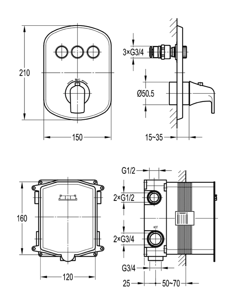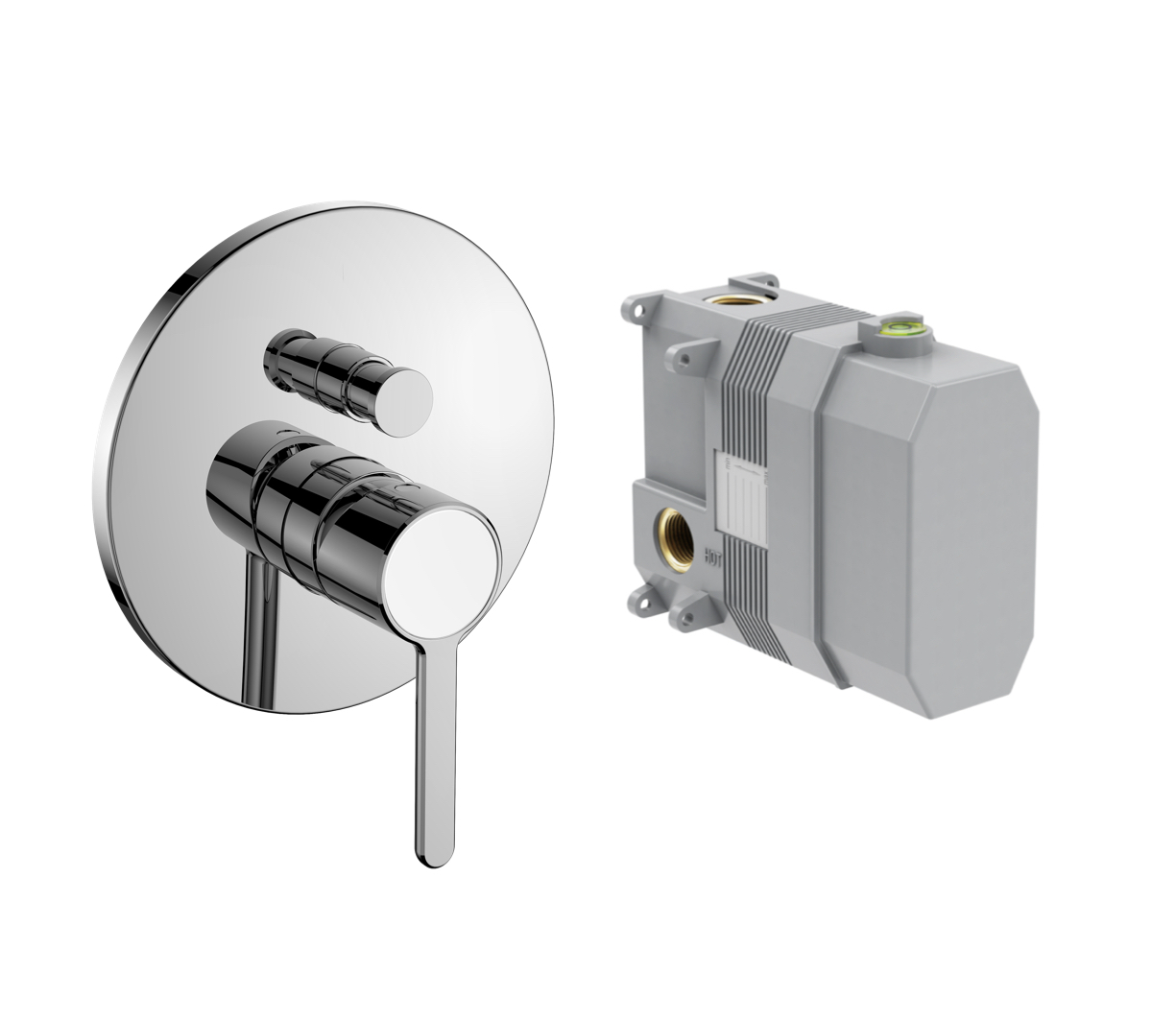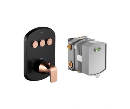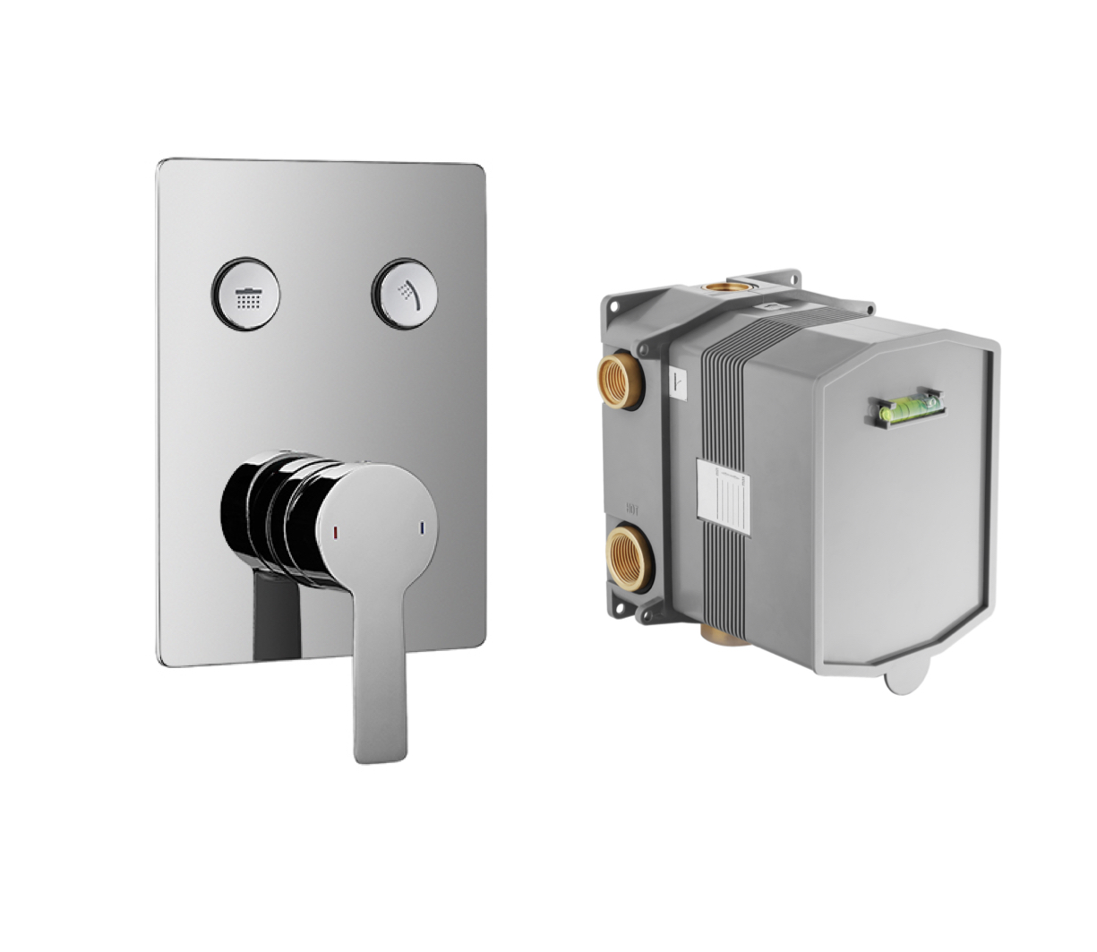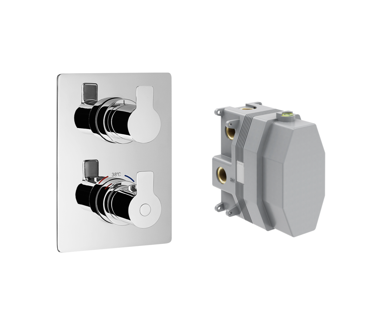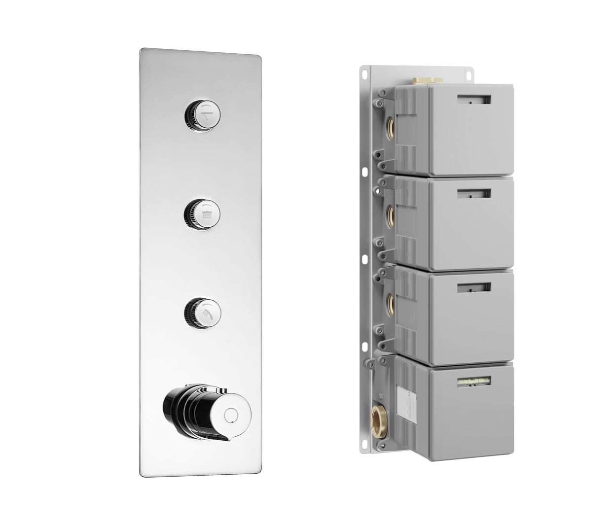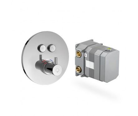 Century Смеситель термостатический для ванны и душа встраиваемый в стену на 2 выхода (2*1/2), 1 сквозной выход 3/4 GoClick-V хром (SmartBox в комплекте)