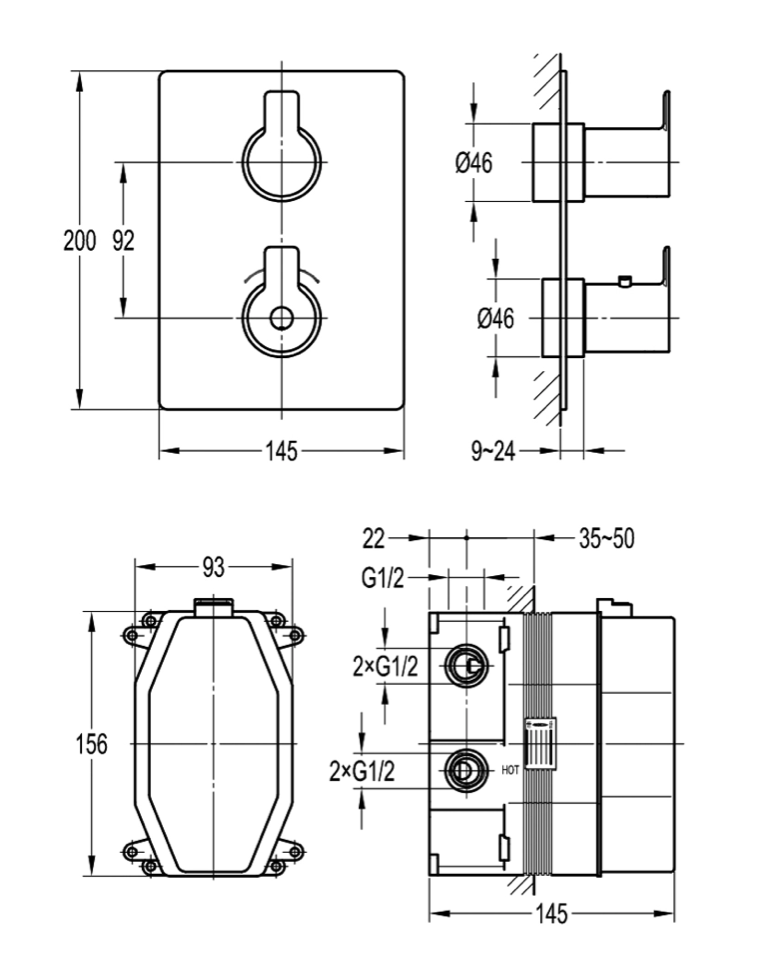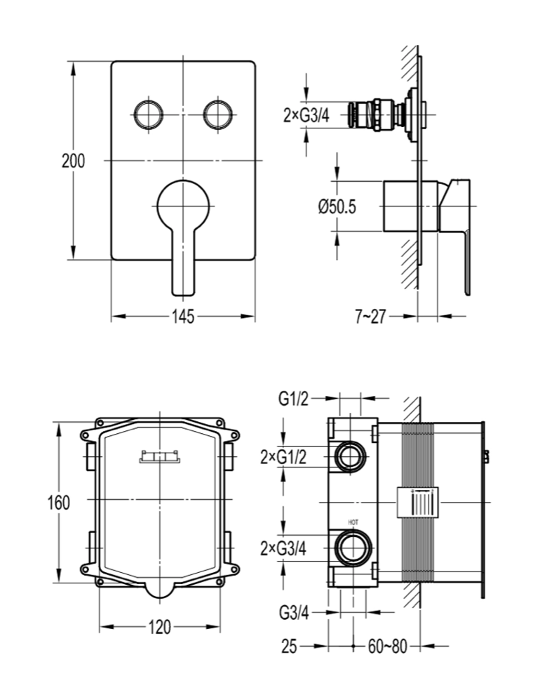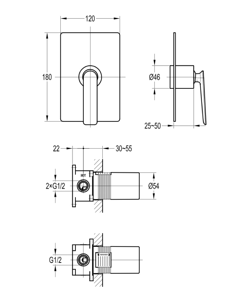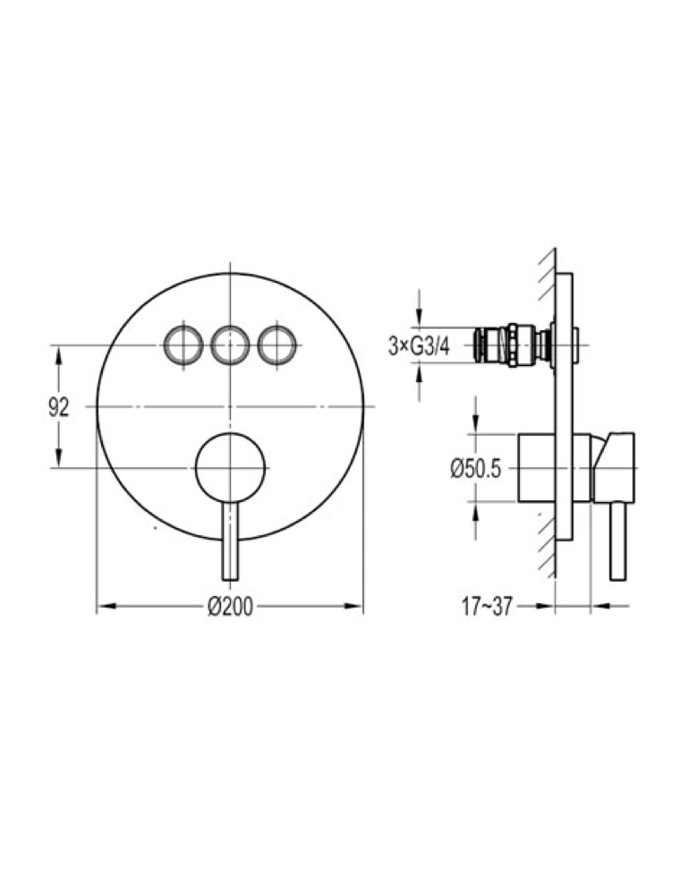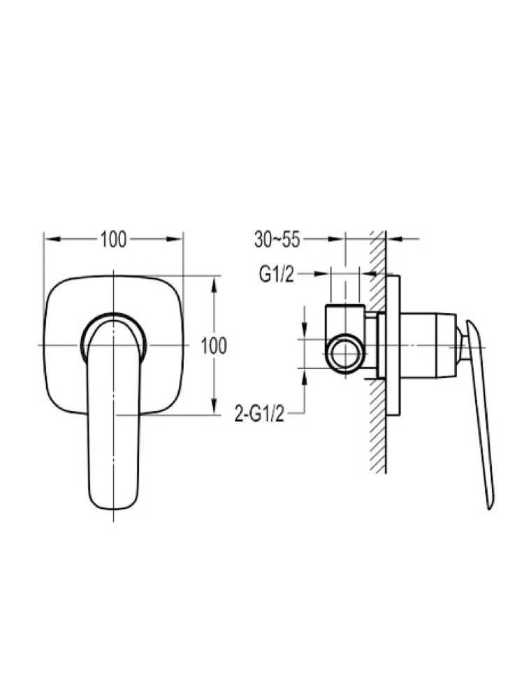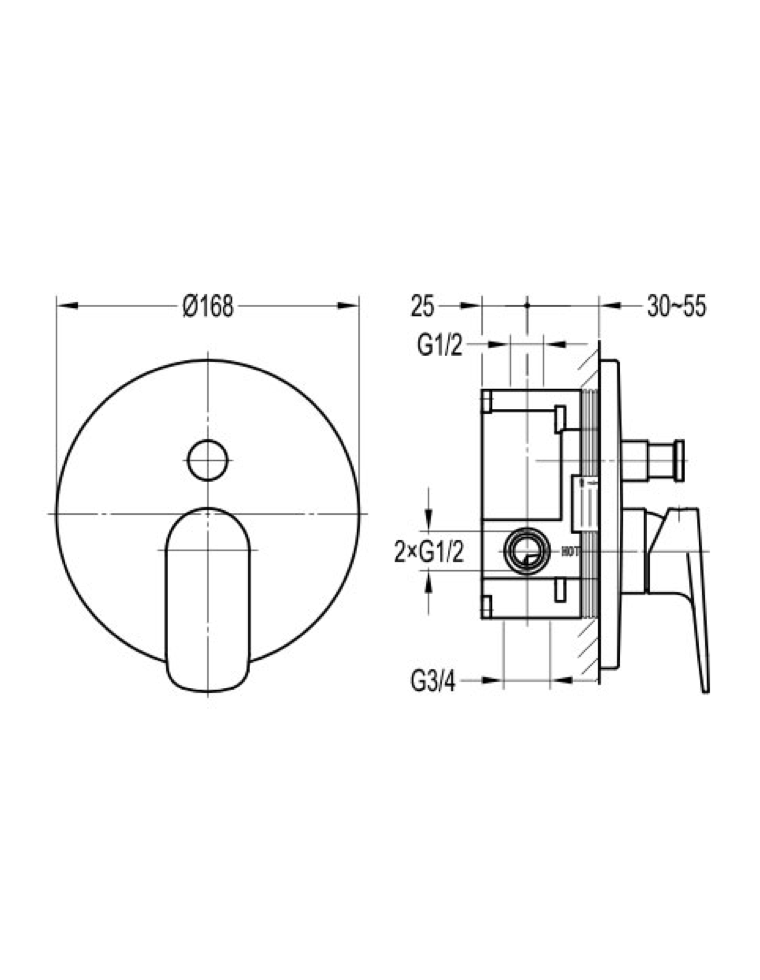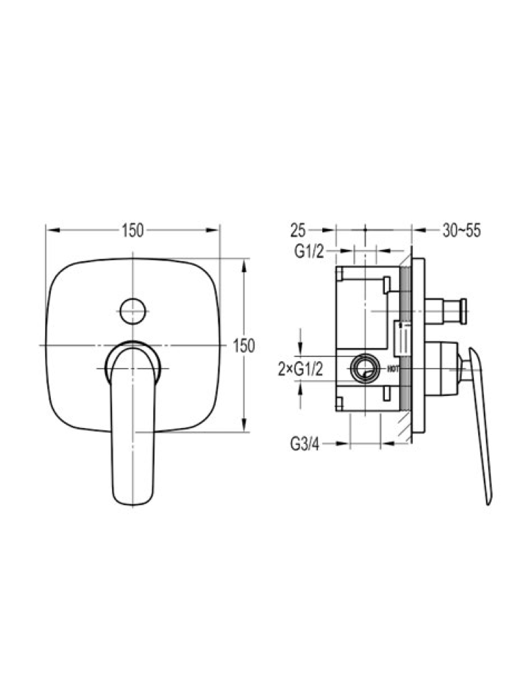 Century Смеситель термостатический для ванны и душа встраиваемый в стену на 2 выхода (2*1/2), 1 сквозной выход 3/4 GoClick-V хром (SmartBox в комплекте)