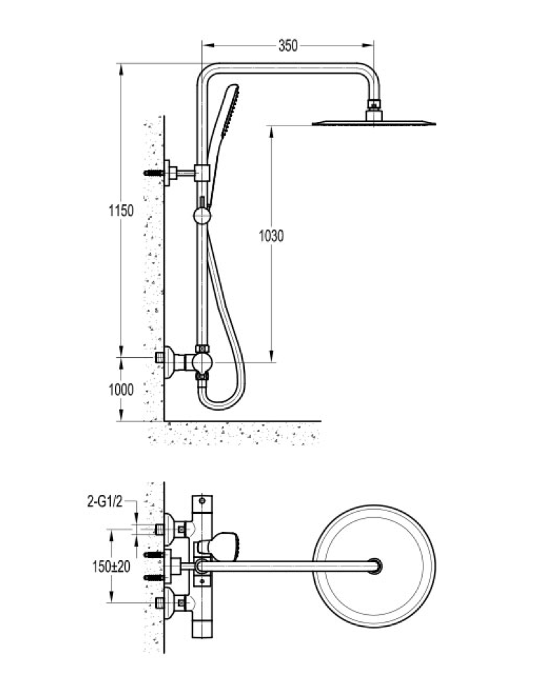 Century Душевой комплект (верхний душ 18 см + кронштейн + ручной душ + держатель с подводом воды + смеситель тер с переключателем на + гибкий шланг 150 см) хром